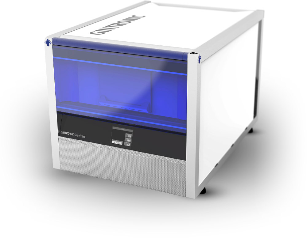 Mit der GINTRONIC GraviTest 9000 – Serie hat die GINTRONIC AG die gravimetrische Bestimmung der Wasserdampfdurchlässigkeit von Polymerfolien und anderen Plattenmaterialien auf eine neue Stufe gestellt. GraviTest bietet eine einfache Probenvorbereitung, eine benutzerfreundliche GraviCommander Pc Software und die vollständige Automatisierung des Messprozesses. Dies, in Kombination mit der genauen und robusten Waage, ermöglicht für die hochpräzise gravimetrische Messung der Wasserdampfdurchlässigkeit, mit einem Minimum an Zeitaufwand für den Anwender, wird die gravimetrische Methode zum Kinderspiel.